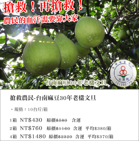 就是今天,受到好朋友jason 的推薦,我買了【 搶救農民-台南麻豆30年老欉文旦(10台斤) 】 之前就在看很久了 實在覺得非常心動 現在上網購物真的超級方便的,而且一定要貨比三家! 剛好17 life的 搶救農民-台南麻豆30年老欉文旦(10台斤) 在做促銷特價,不趁這個時候購買就真的虧大了 而且他們東西真的超划算的,辦公室朋友們都紛紛團購呢! 每日新聞推薦