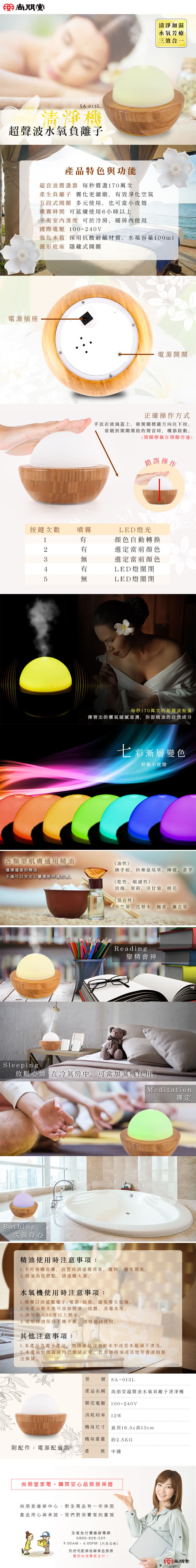 前些日子家裡要換許多電器,看到【尚朋堂】超聲波水氧負離子清淨機SA-013L覺得很不錯